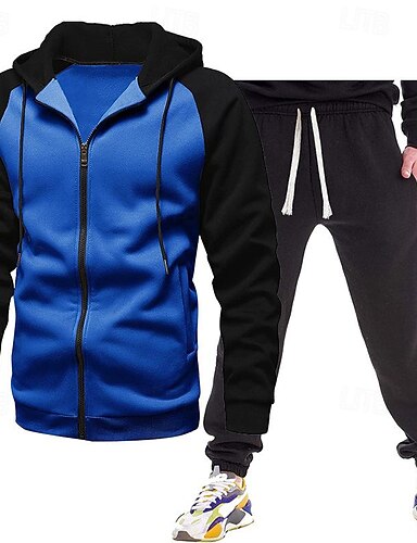 Damen 2-teiliger Trainingsanzug Lounge-Hoodie Trainingsanzug-Sets Baggy mit Tasche Farbblock Kombination Herbst Schwarz Blau Wandern Berufung Outdoor Langarm Sport Sportkleidung Mikroelastisch