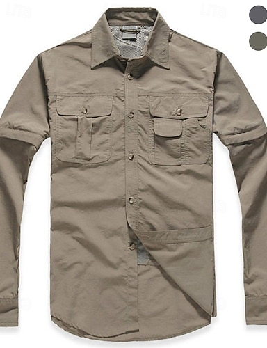 Herren Cargo-Shirt Wanderhemd Wanderspitze Langarm Umlegekragen Oberteil Außen Wasserdicht Winddicht Leicht Frühling Herbst Polyester Dunkelgrau Armeegrün Khaki Camping / Wandern / Höhlenforschung
