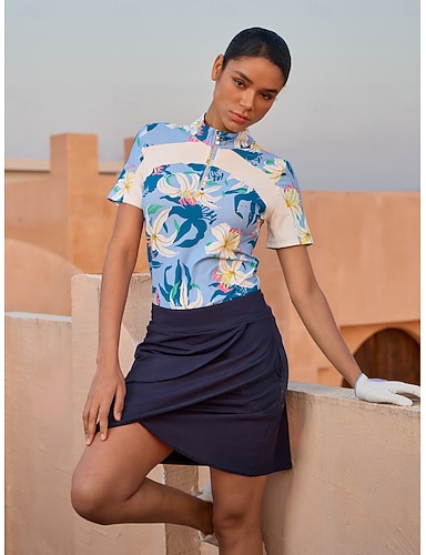 Damen Golfkleid Dunkelmarine Hellblau Kurzarm Sonnenschutz Kleid Paisley-Muster Damen-Golfkleidung, Kleidung, Outfits, Kleidung