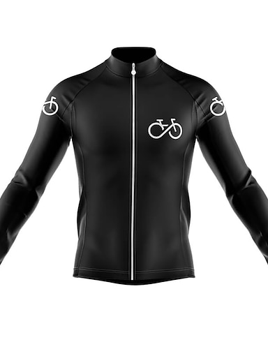 Herren Radtrikot Grafik Langarm Fahhrad Trikot Oberteil mit 3 Gesäßtaschen Mountainbike MTB Straßenradsport Schnelltrocknend Reflektierende Streifen Rückentasche Feuchtigkeitsableitend Sport Schwarz