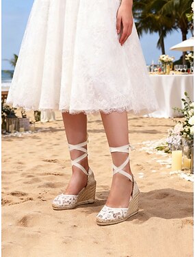 Espadrille-Sandalen mit Keilabsatz und Spitze für Damen – elegante Brautschuhe mit Schleifenverschluss für Strandzeremonien, bequem &Sommerschuhe für Brautjungfern