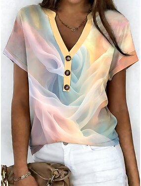 Damen T Shirt Druck Ombre Grafik Vintage Stilvoll Klassisch Kurzarm V Ausschnitt Einkerbiger Ausschnitt Normale Oberteile Täglich Ausgehen Wochenende Blau Purpur Orange Grün Sommer Frühling