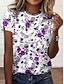 Damen T Shirt Druck Blumen Grafik Pflanzen Bohemien Hawaiianisch Stilvoll Kurzarm Rundhalsausschnitt Normale Oberteile Lässig Täglich Blau Weiß Violett Rot / Blau Beige Sommer Frühling