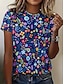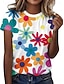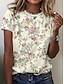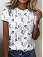 Damen T Shirt Druck Blumen Grafik Mode Klassisch Kurzarm Rundhalsausschnitt Normale Oberteile Lässig Täglich Wochenende Blau Weiß Grün Schwarz Sommer Frühling