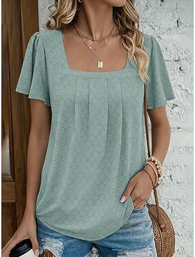 Damen Textur Bluse Oberteil mit Ösen Pointelle Tee T Shirt Lochmuster Einfarbig Mode Klassisch Lässig Kurzarm V Ausschnitt Normale Oberteile Lässig Täglich Strand Schwarz Weiß Rosa Himmelblau Grün