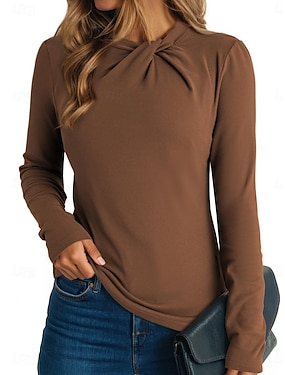 Damen Bluse Einfarbig Stilvoll Lässig Langarm Rundhalsausschnitt Normale Oberteile Täglich Schwarz Armeegrün Braun Grün Khaki Frühling Herbst