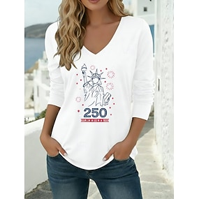 Amerikanischer Unabhängigkeitstag Damen T Shirt Druck Grafik Stilvoll Klassisch Lässig Langarm V Ausschnitt Normale Oberteile Täglich Blau Schwarz Weiß Rote Grün Frühling Herbst