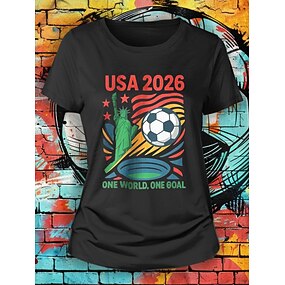 Weltfußballspiel 2026 Damen T-Shirt Print Grafik Buchstabe Stilvoll Klassisch Freizeit Kurzarm Rundhals Reguläre Oberteile Tägliche Blau Schwarz Weiß Rot Sommer Frühling