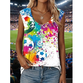 Damen Tank Top Grafik Geometrisch Fussballteam Vintage Stilvoll Klassisch Ärmellos Rundhalsausschnitt Rundhals Lange Oberteile Lässig Täglich Blau Schwarz Gelb Rote Sommer Frühling