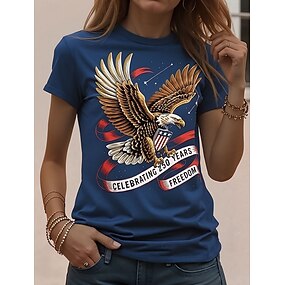Unabhängigkeitstag Patriotisches Damen T-Shirt Druck Grafik Buchstaben Amerikanische Flagge Stilvoll Klassisch Lässig Kurzarm Rundhals Reguläre Oberteile Täglich Blau Schwarz Weiß Rot Sommer Frühling