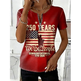 Unabhängigkeitstag Amerikanisches Jubiläum Patriotischer Damen T-Shirt Reißverschluss Grafik Amerikanische Flagge Stylisch Klassisch Lässig Kurze Ärmel Rundhals Reguläre Oberteile Alltag Wochenende
