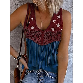 Unabhängigkeitstag Patriotisches Damen Tanktop Flagge Rock Strand Ohne Ärmel V-Ausschnitt Reguläre Oberteile Täglich Club Uniformen Ausgehen Wein Blau Staubblau Sommer Frühling