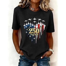 Amerikanischer Unabhängigkeitstag Damen T Shirt Druck Grafik Buchstabe Amerikanische Flagge Stilvoll Klassisch Lässig Kurzarm Rundhalsausschnitt Normale Oberteile Täglich Blau Asche Schwarz Weiß