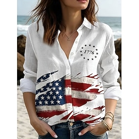 Unabhängigkeitstag Patriotisches Damen Hemd Bluse Grafik Flagge Vintage Alltag Stylisch Langarm Hemd Kragen Reguläre Oberteile Alltag Druck Gelb Rot Lila Grün Frühling Herbst Winter