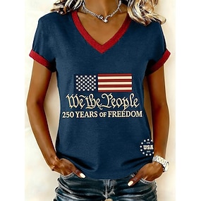 Amerikanischer Unabhängigkeitstag Damen T Shirt Druck Grafik Flagge Vintage Stilvoll Klassisch Kurzarm V Ausschnitt Normale Oberteile Täglich Blau Schwarz Weiß Rote Sommer Frühling