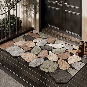 PVC-Badematte aus Luffa, Kieselstein-Fußmatte, rutschfester Eingangsbereichteppich, waschbare, flache Willkommensmatte für Terrasse, Veranda, Hauswirtschaftsraum, Landhausstil