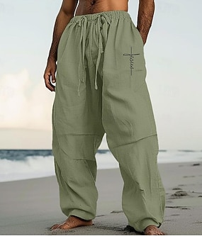 Herren Leinenhose Hose Hosen Sommerhosen Strandhose Kordelzug Elastische Taille Gerade geschnitten Glatt Komfort Atmungsaktiv In voller Länge Casual Täglich Festtage Urlaub Modisch Schwarz Weiß