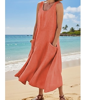 Damen Maxikleid Sommerkleid A Linie Kleid Urlaub Lässig Strand Ausgehen Lässiger Schnitt Einfarbig Grafik Ärmellos Rundhalsausschnitt Hellblau Weiß Purpur Orange Sommer Frühling