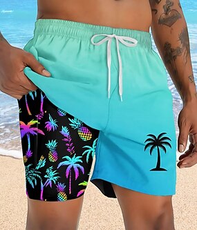 Herren Kokospalme Farbverlauf Tropische Pflanzen Gefütterte Shorts 2 in 1 Badeshorts Badeshorts Mittlere Taille Hawaiianisch Ferien Seitentaschen Mit Kompressionsfutter Elastischer Kordelzug in der
