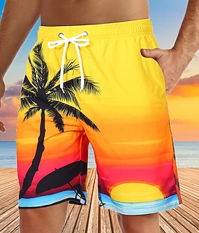 Herren Grafik Kokospalme Badehosen Badeshorts Boardshorts Mittlere Taille Streetwear Hawaiianisch Boho Lässig Täglich Ferien Kordelzug Elastischer Bund 3D-Druck Designer Bekleidung