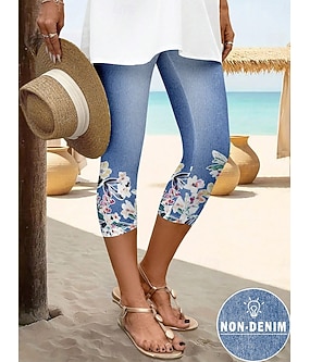 Frauen Leggings Capri Hosen Hochstretchfähigkeit Mode Streetwear Vollständig Lang Mittlere Taille Blumen Druck Thermisch Warm Atmungsaktiv Weich Outdoor Täglich Strand Buff Schwarz Himmelblau Sommer