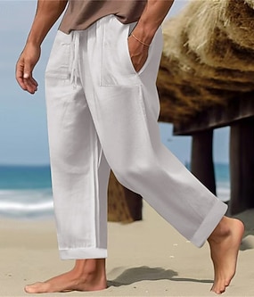 Herren Leinenhosen Hose Sommerhose Strandhose Kordelzug Elastischer Bund Einfach Atmungsaktiv Leicht Volle Länge Outdoor Täglich Ferien Urlaub Mode Schwarz Weiß