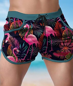 Herren Tiermotiv Flamingo Tropisch Badehosen Badeshorts Boardshorts Mittlere Taille Mode Designer Surfen Ferien Strand Kordelzug Tasche Elastischer Bund Designer Bekleidung