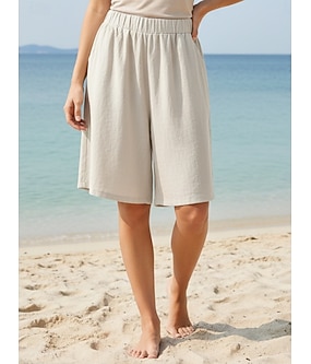 Damen Caprihose Kunstbaumwollleinen Shorts Sommershorts Urlaub Basic Lässig Knielang Mittlere Taillenlinie Einfach Elastischer Bund Komfort Atmungsaktiv Unelastisch Täglich Outdoor Urlaub Schwarz
