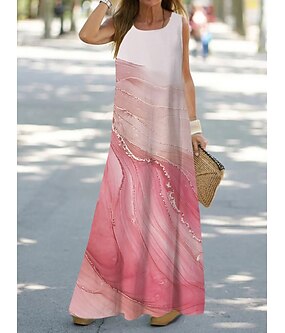Damen Maxi Kleid Sommerkleid Shift Kleid Tank Kleid Fashion Streetwear Modern Outdoor Urlaub Party Loose Fit Ombre Floral Marmor Ärmellos Rundhals Hellrosa Rosa Marineblau Blau