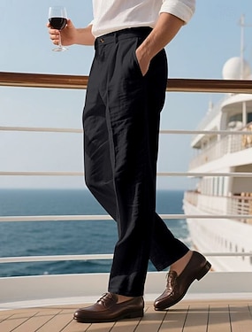 Herren Leinenhosen Hose Sommerhose Freizeithose Knöpfe Gerader Schnitt Einfach Komfort Atmungsaktiv Volle Länge Party Geschäft Ferien Mode Streetwear Schwarz Weiß