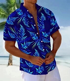 Herren Farbverlauf Palmblatt Tropische Pflanzen Sommer Hawaiihemd Knopfhemd Alohahemd Kurzarm Hawaiianisch Ferien Strandbekleidung Sommer Frühling Umlegekragen 3D-Druck Hemden mit Kragen Eine Tasche