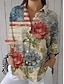 Unabhängigkeitstag Patriotisches Damen Hemd Floral Grafische Flagge Vintage Stylisch Langarm Flatterärmel Glockenärmel Hemdkragen Täglich Arbeit Feiertag Rüsche Weiß und Rot Sommer Frühling Herbst