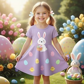 Ostern Mädchen' 3D Grafik Kaninchen Kleid Kurzarm 3D-Druck Sommer Frühling Täglich Urlaub Party Niedlich Basic Lässig Kinder 4-12 Jahre Freizeitkleid A Linie Kleid Knielang Normale Passform