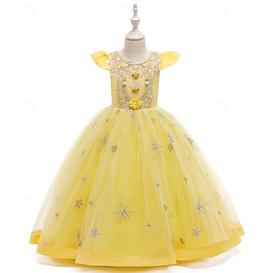 Blumenmädchenkleid Mädchen Formelle Kleidung Hochzeitskleidung Party Hochzeit Formell Niedlich Formell Patchwork Netz Blumen Kurzarm Rundhalsausschnitt Hellrosa Gelb Ab 4 Jahren