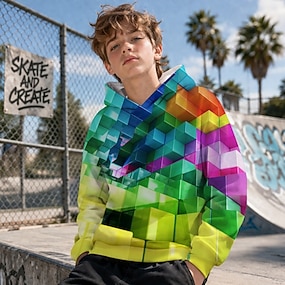 Jungen 3D Graphic Geometrisch Kapuzenshirt Langarm 3D-Druck Frühling Herbst Aktiv Sport Modisch kinderkleidung 3-12 Jahre Outdoor Täglich Innen Regular Fit