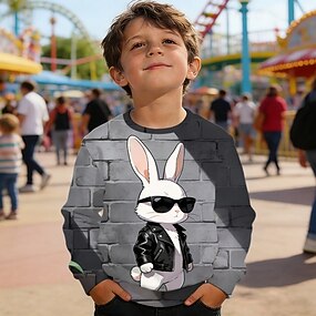 Ostern Jungen 3D Grafik Kaninchen Sweatshirt Pullover Langarm 3D-Druck Frühling Herbst Aktiv Mode Streetwear Kinder 4-12 Jahre Rundhalsausschnitt Lässig Täglich Outdoor Normale Passform