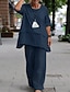Damen Baumwoll-Leinen-Sets Zweiteiler einfarbig Mode Rundhals Street Daily 2-teilig Weiß Blau Khaki Grau Frühling & Herbst