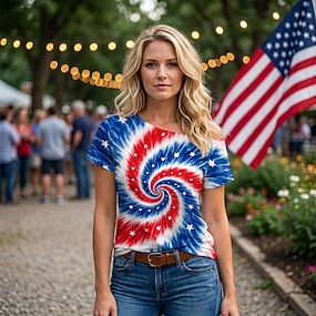 250-jähriges Jubiläum USA Retro Vintage 1980er T-Shirt Ein-Schulter Kurze Ärmel Ein-Schulter Tie Dye Print Kostüm Damen 250-jähriges Jubiläum USA 4. Juli Unabhängigkeitstag Erwachsene T-shirt Sommer