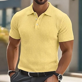 Herren Rippenstrick-Top Textur Lässig Arbeit Revers Gerippter Polokragen Kurzarm Basic Modern Farbblock Knöpfe Gestrickt Sommer Frühling Frühling & Sommer Normale Passform Blau Weiß Gelb Burgunderrot