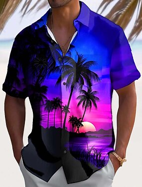 Herren Kokospalme Natur & Landschaft Tropische Pflanzen Sommer Hawaiihemd Knopfhemd Alohahemd Kurzarm Hawaiianisch Lässig Urlaub Sommer Frühling Umlegekragen 3D-Druck Hemden mit Kragen Eine Tasche