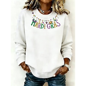 Karneval Damen Pullover Sweatshirt Grafik Mode Lässig Langarm Rundhals Reguläre Oberteile Straßen Alltag Druck Lila Grün Frühling Herbst Winter