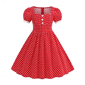 1950er Hepburn Retro Vintage A-Linie Kleid Swing-Kleid Ausgestelltes Kleid Kurze Ärmel Tupfen A-Linie Kostüm Mädchen Karneval Maskerade Urlaub Alltagskleidung Kinder Kleid Abschlussballkleider