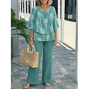 Damen Hosen-Sets Halbarm Schmetterling Rundhals Blumen Grafik Elegant Urlaub Lässig Täglich Blau Rosa Purpur Frühling & Sommer