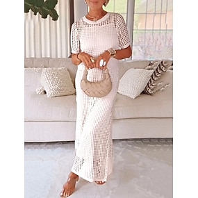 Damen Langes Kleid Maxikleid Cut-out-Kleider Sommerkleid Elegant Mode Modern Outdoor Urlaub Ausgehen Normale Passform Einfach Kurzarm Rundhalsausschnitt Schwarz Weiß Rosa Purpur Sommer Frühling