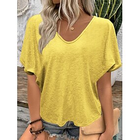 Damen Hemd Bluse Einfach Stilvoll Klassisch Modern Kurzarm V Ausschnitt Normale Oberteile Täglich Ferien Ausgehen Blau Schwarz Weiß Gelb Rosa Sommer Frühling