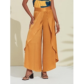 Damenhose Satin weites Bein Maxi locker Bohemien Urlaub lässig täglich Frühling Sommer Herbst