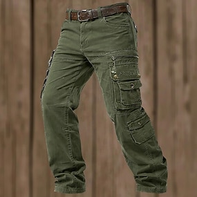 Herren Cargo-Hosen Hose Arbeitshosen Knöpfe Mehrere Taschen Einfach tragbar Volle Länge Outdoor Täglich Campen und Wandern Urlaub Mode Schwarz Armeegrün Unelastisch
