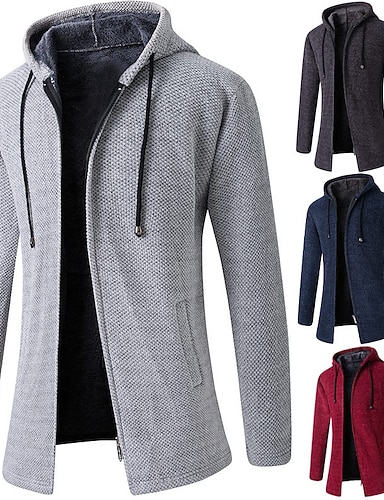 Herren Strickjacke Gerippt Stricken Tunika Strick Glatt Kapuzenpullover Warm-Ups Moderne zeitgenössische Freizeitskleidung Ausgehen Bekleidung Winter Schwarz Hell Gray M L XL