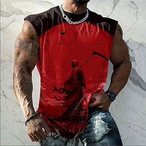 Herren Schädel T Shirt Ärmellos T-Shirt 3D-Druck Rundhalsausschnitt Hemd Mode Täglich Party Straße Schwarz Sommer Frühling Bekleidung S M L XL XXL XXXL