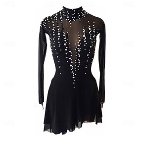Eiskunstlaufkleid Damen Mädchen Eislaufen Kleid Schwarz Patchwork Netzstoff Hohe Elastizität Training Wettbewerb Eiskunstlaufkleidung Klassisch Kristall / Strass Langarm Eislaufen Eiskundstlauf